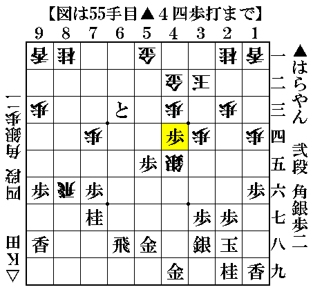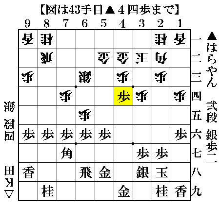 私が指したのは44歩。歩の突き捨て?でいいのかな(汗)